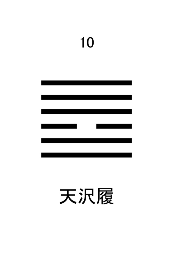 「虎の尾を履む。人を咥わず。亨る」(とらのおをふむ ひとをくらわず とおる)とあって、虎のしっぽを踏むような危険があるけど、なんとかいける、という卦ですが、この1つだけの陰の3爻だけは虎を踏んでしまう。