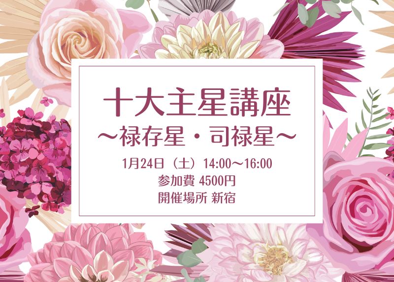 十大主星全般について知りたい方はもちろん、禄存星・司禄星を自分が持っている、家族や親しい人が持っているなどで、より深く理解をしたい方々の参加をお待ちしております。