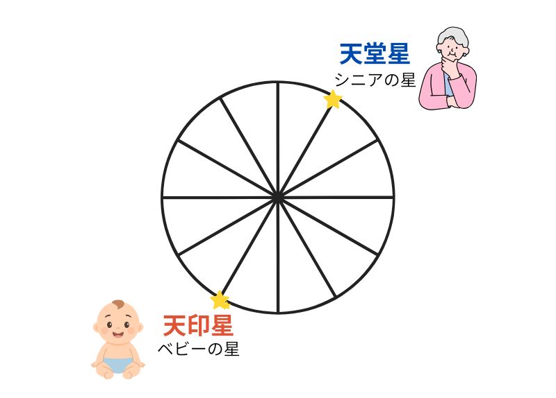 上の命式のように、角の3つの星(赤い丸がついている位置の星)を確認してくださいね。