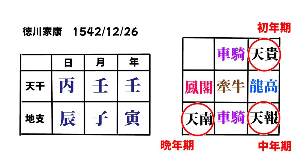 こちらの〇で囲ってある3つの星が十二大従星です。