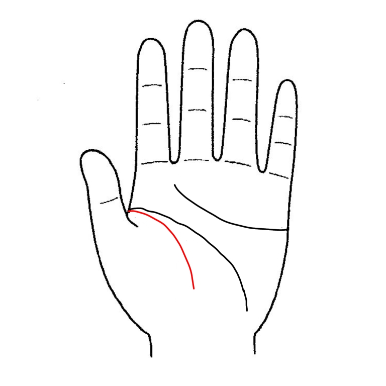 親指と人差し指の間の起点から出ている生命線はすごく短いのです。